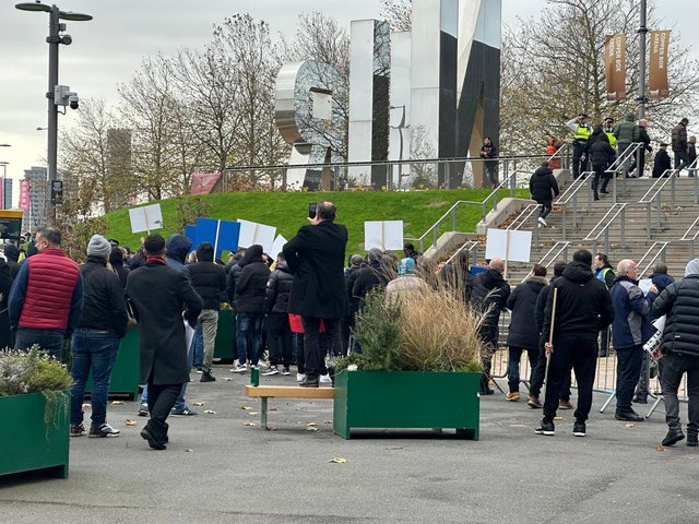 Megjithatë forcat e rendit të Britanisë së Madhe kanë marrë masat, duke vendosur një distancë të kontestatorëve me ata që duan të marrin pjesë në tubim. Janë vendosur pengesa metalike dhe po mbahen larg të dy palët. Takimi nis pas pak në Parkun Olimpik Queen Elisabeth.