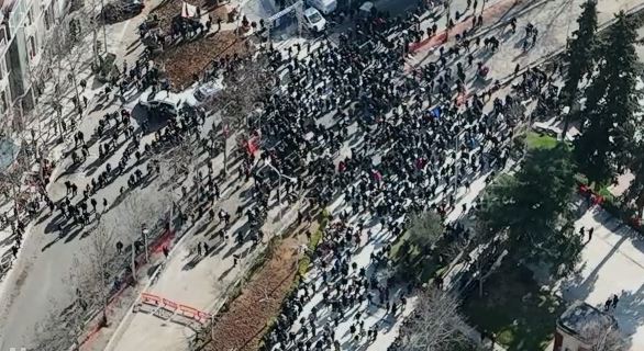 Pamjet me dron të shpërndara nga mediat tregojnë pjesëmarrjen në protestën e sotme të thirrur nga Sali Berisha.
