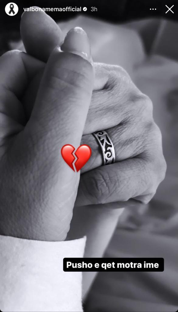 Me anë të një postimi në rrjetet Valbona ka postuar një foto, ku shihet teksa i mban dorën motrës së saj dhe shkruan “pusho e qetë motra ime”.