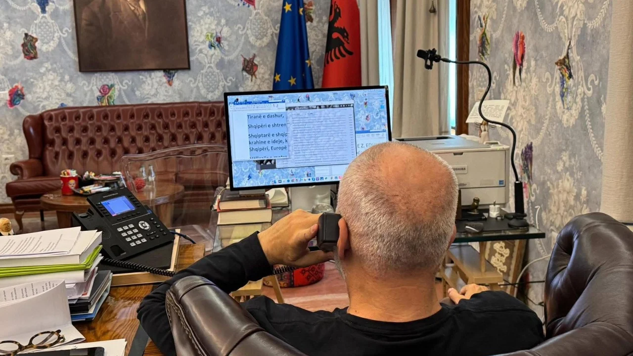 Ndërkohë nga një foto e publikuar një ditë më parë nga telefonata me Hashim Thaçin, nga kompjuteri në zyrën e Ramës, u panë disa pasazhe nga fjalimi i fitores shkruar prej Edi Ramës, i cili u kërkoi shqiptarëve një maxhorancë përtej 74 votave dhe mori më shumë se kaq për të çuar përpara misionin e tij për Shqipërinë në BE deri në 2030.