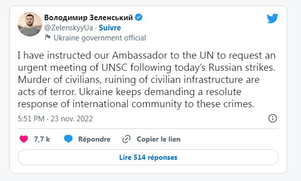 Presidenti ukrainas njoftoi në Twitter se kishte udhëzuar ambasadorin e tij në Kombet e Bashkuara që të kërkonte një takim urgjent të Këshillit të Sigurimit të OKB-së.